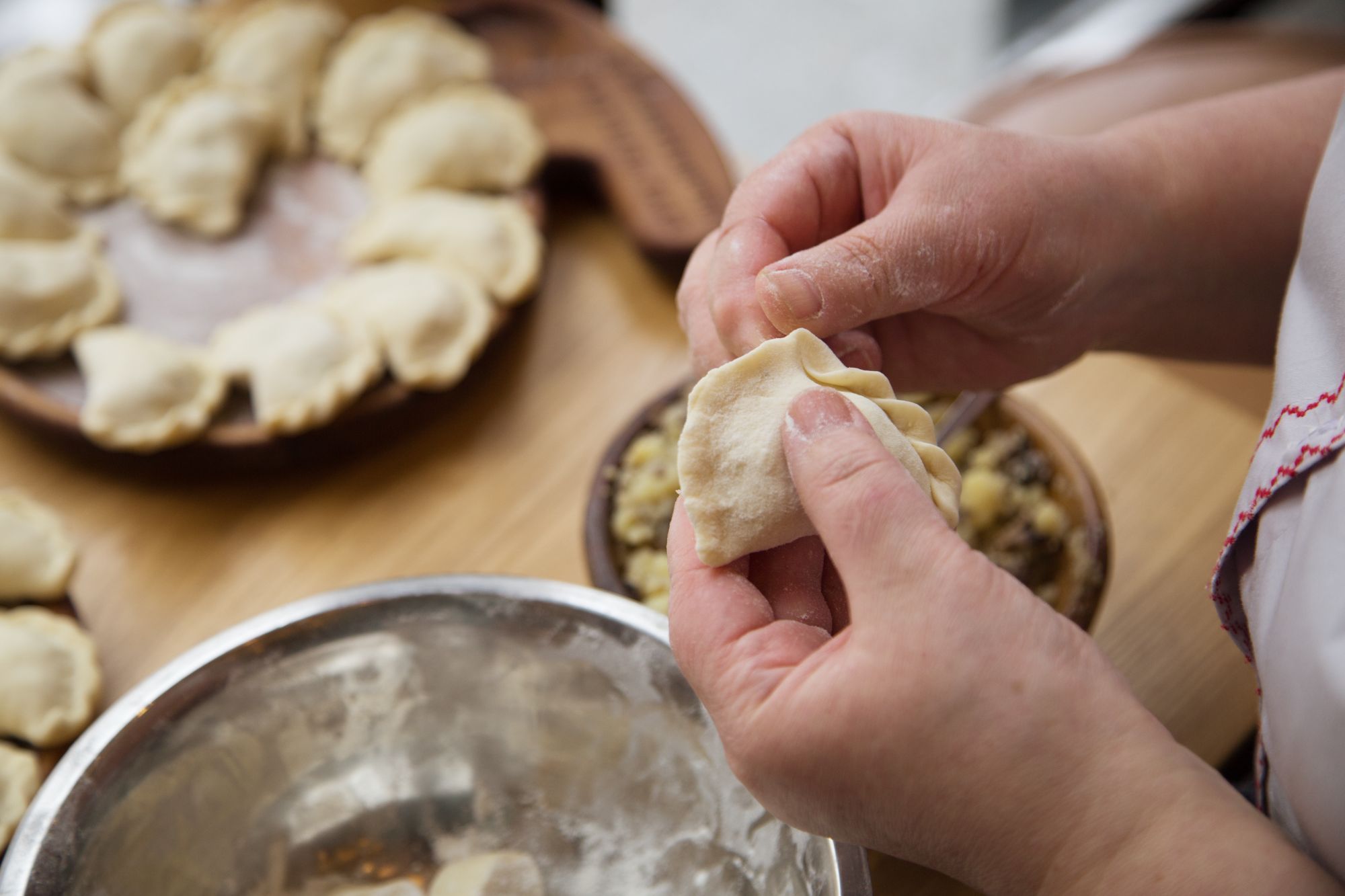 Naszą wizytówką są ręcznie lepione pierogi – z cienkim ciastem i bogatym farszem, którymi zachwycają się nasi stali goście. Od klasycznych ruskich, po soczyste mięsne i sezonowe wariacje – u nas każdy znajdzie swój ulubiony smak. Wpadnij na szybki lunch, domowy obiad lub zabierz nasze specjały na wynos.